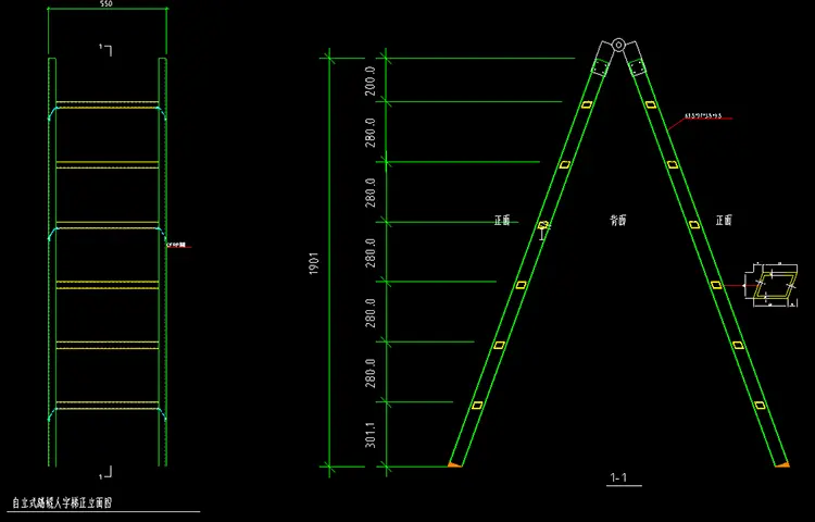 Yapı: Katlanır A-çerçeve tasarımı, çift taraflı tırmanma
